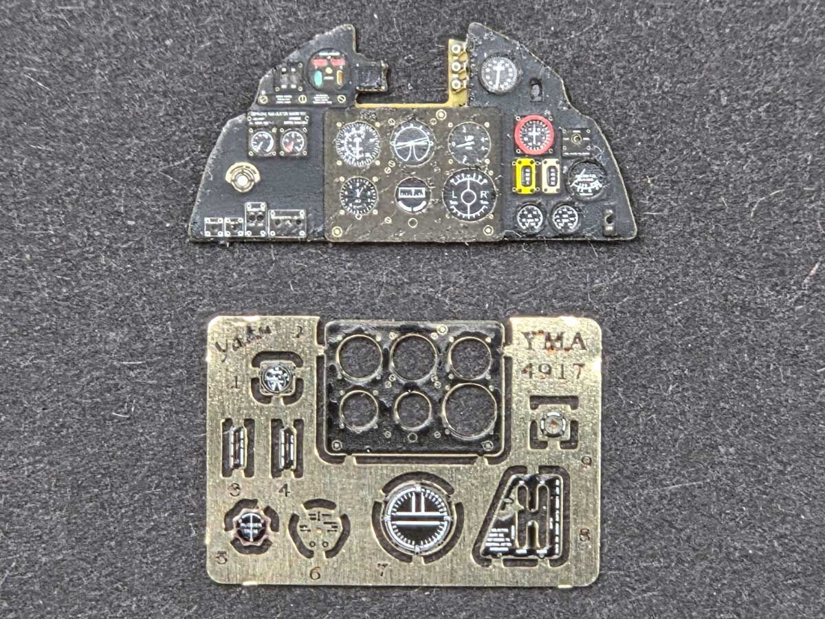 With Hurricane 1/48 kits, the modeler has full freedom of choice. The very good kit instrument panel, combined with high-quality decals, can deliver excellent results when applied carefully. Alternatively, a ready-made, pre-painted photo-etched instrument panel offers a quicker workflow and an immediately crisp, readable result.