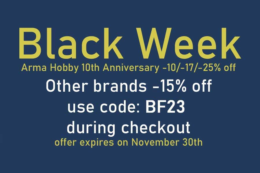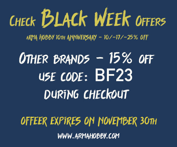 November 2023 at Arma Hobby is mainly about new products and anniversary promotions on the 10th anniversary of our company, but we do not forget about the classic Black Friday - which in our online store Armahobby.com is Black Week, lasting from today until the end of November!