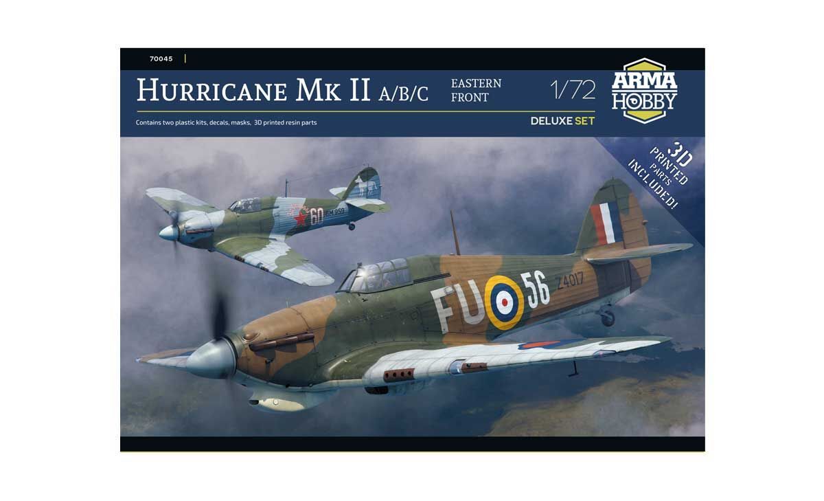 The Hurricane Mk II a/b/c double set in 1/72 scale is available for pre-order. The set includes 3D printed accessories, masks and seven colour options from the Eastern Front (RAF and VVS).