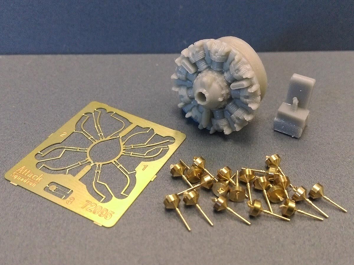 Upgrade set for SBD-5 Dauntless from Hasegawa. Resin engine, photoetched fret and turned brass pushrods.