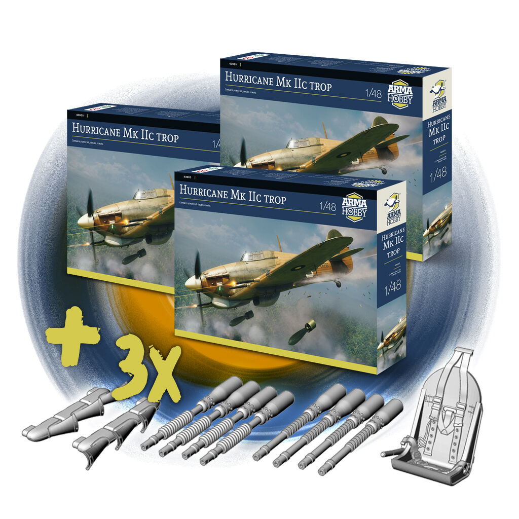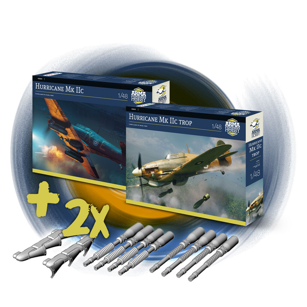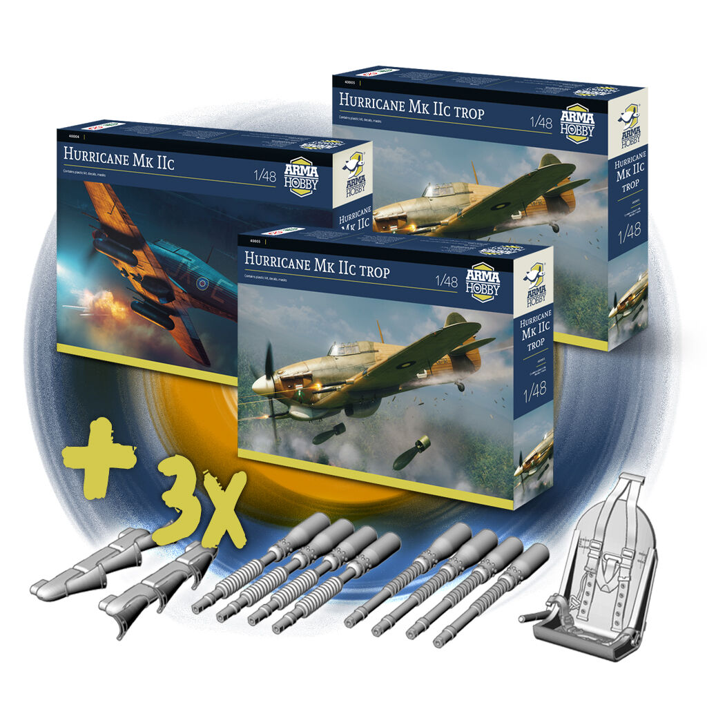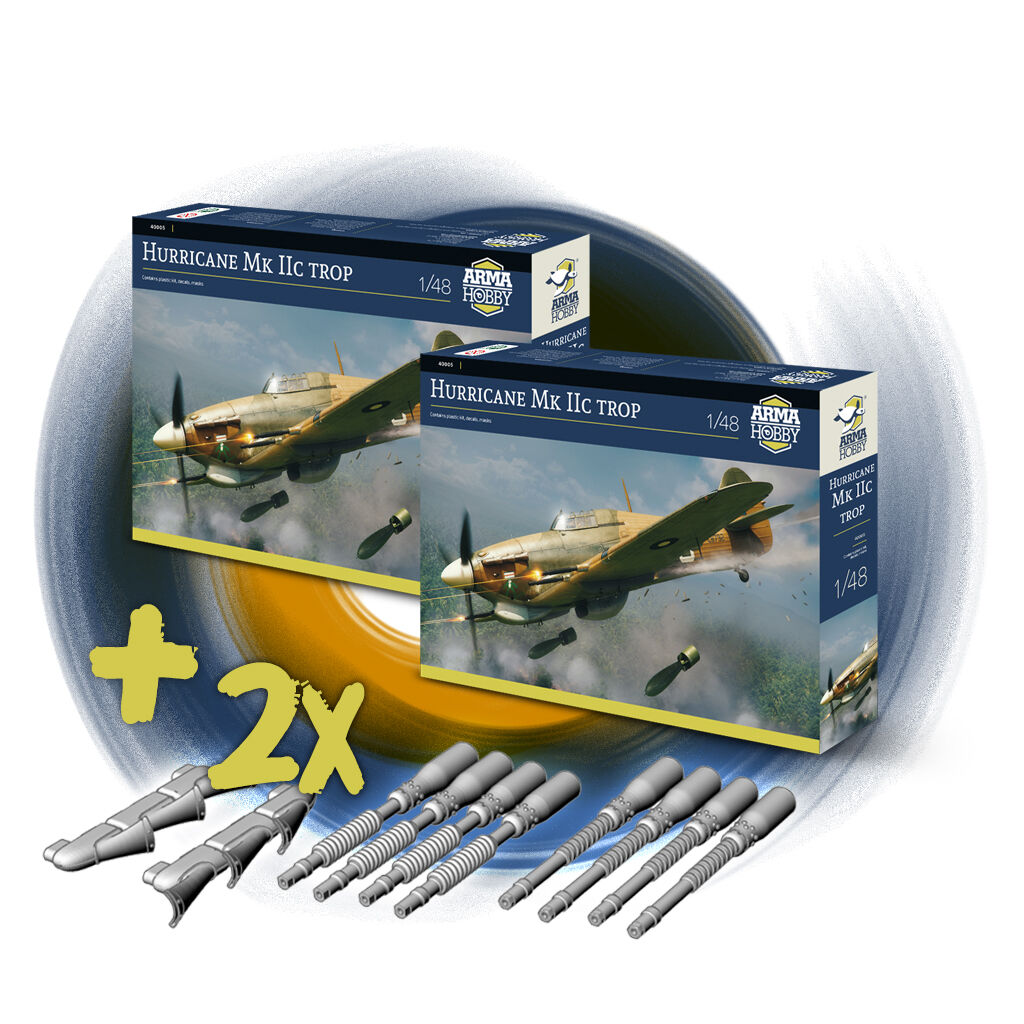 Additionally in the promotion: bundles of 1/48 Arma Hobby model kits: Hurricane Mk IIc trop and PZL P.11c, and Hurricane with Master metal barrels at a discount.