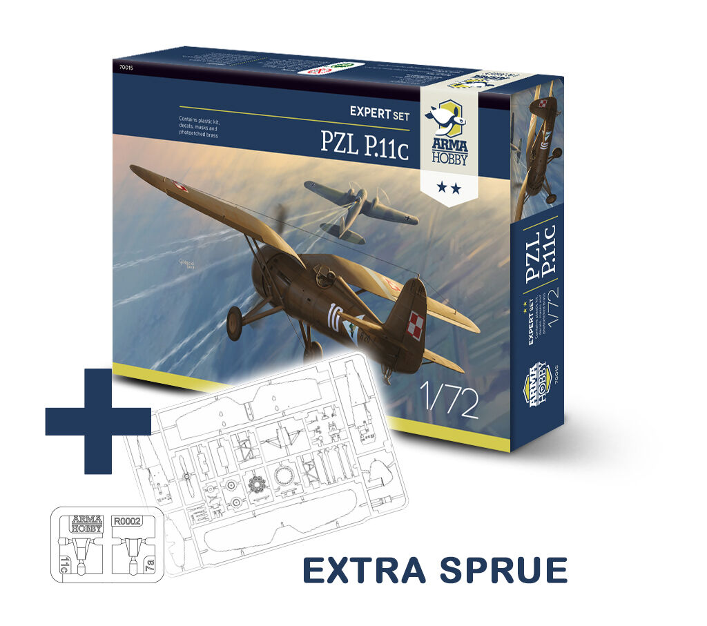 Right now, when you buy a P.11c model, you can add an extra plastic sprue (grey sprue with model parts + clear sprue with windscreen) for a special price of 8.39 EUR.