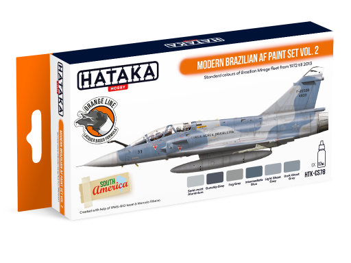 HTK-CS78 includes standard colours of Brazilian Mirage fleet from 1972 till 2013. The set contains the following lacquer based paints, optimised for use with airbrush: